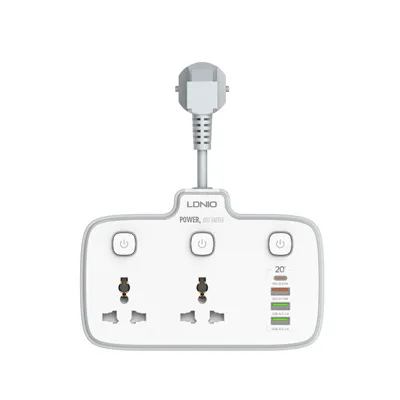 LDNIO SC2413 2-Outlet Universal Extension Socket with PD & QC 3.0 Fast Charger