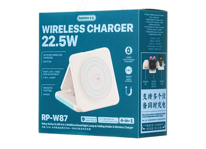 Remax RP-W87 Vukey Series 4-in-1 Holder/ Magnetic Wireless Charger/Night Lamp White