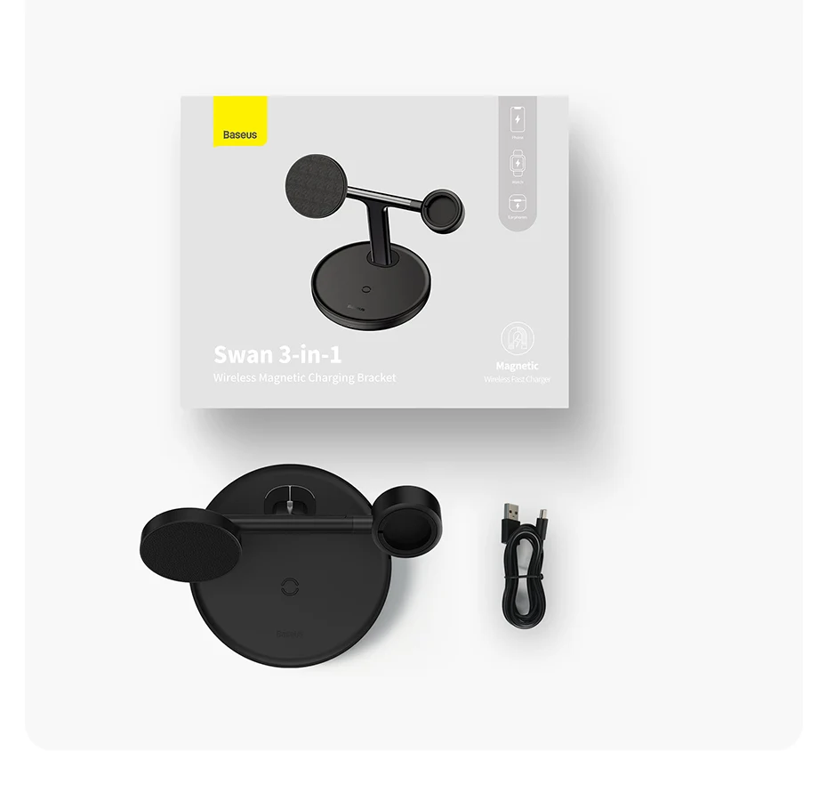 Baseus Swan 3-in-1 Wireless Magnetic Charging Bracket 20W Black Universal version ( Include:USB For type-C 3A 1m)